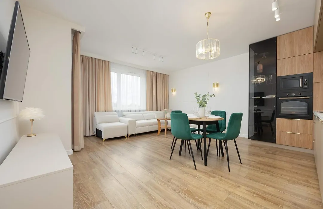 The spacious 79 m² Elegant Apartament Koscieszow In Warsaw With Parking By Noclegi Renters is nestled in the Bialoleka district, around a 15-minute drive from the Warsaw Citadel. Wi-Fi and complimentary private parking are also available at the apartment.